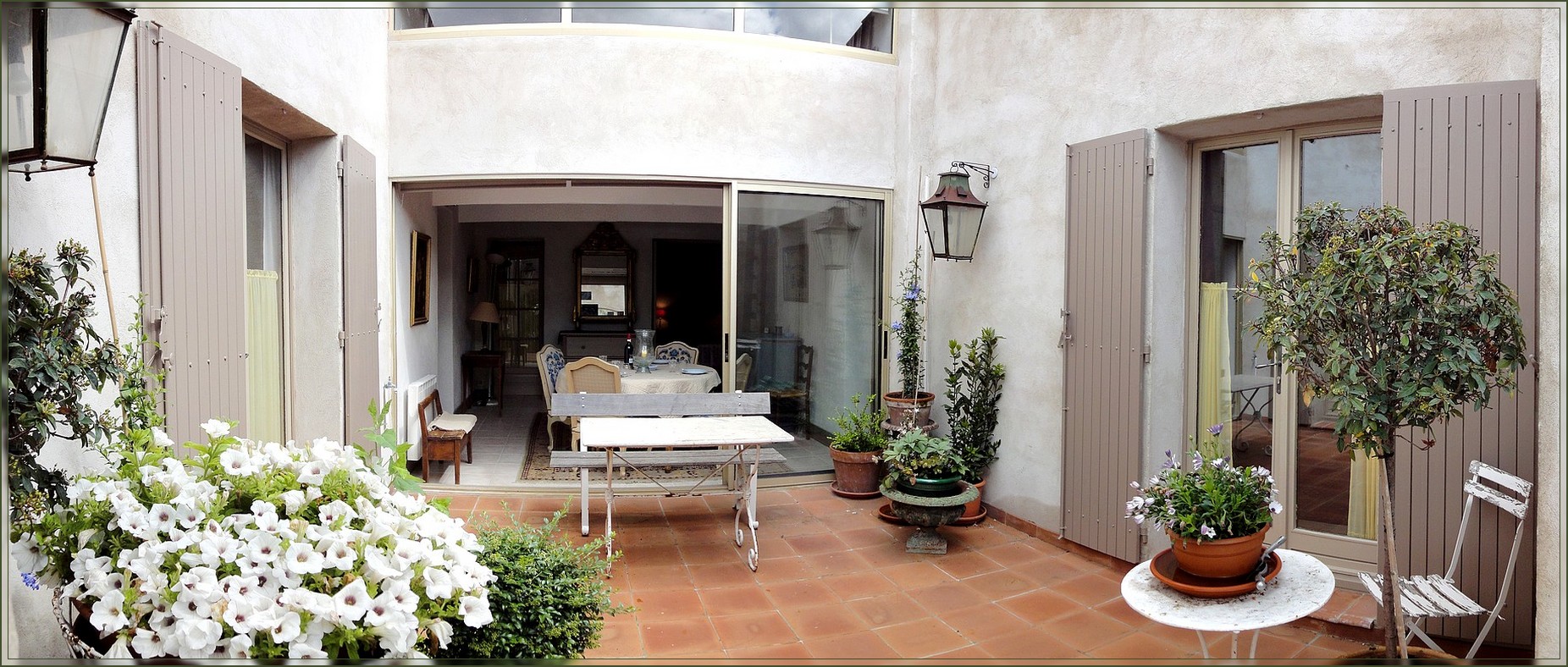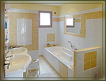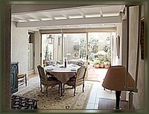 Un joli patio ouvre sur le jardin et par sa fermeture permet de sécuriser l'espace aquatique et de dormir fenêtres ouvertes en toute quiétude. Ce patio est accessible à partir du salon, de la salle à manger et de la grande chambre de la suite parentale. Les pièces à vivre : Un grand salon avec cheminée et un coin bureau, Une salle à manger entièrement ouverte par une baie vitrée sur le patio, Une cuisine indépendante entièrement équipée. Pour la nuit : La suite parentale comprend, deux chambres, une avec un lit en 140, la seconde avec un lit en 120, toutes deux disposent d’une salle de bain avec toilettes, douche, et deux vasques. La chambre aux lits jumeaux procède sa salle de douche avec toilettes. Une chambre mezzanine est là pour accueillir vos invités, (mezzanine accessible pour les adultes). |