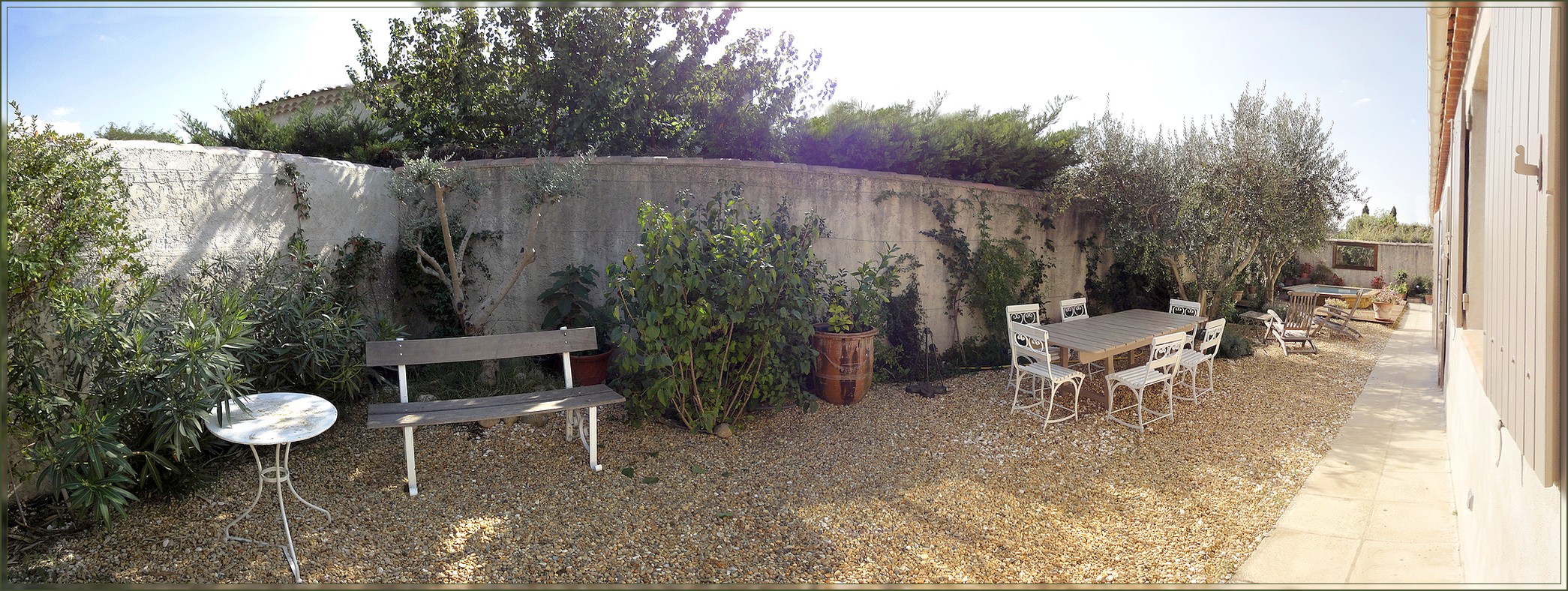 A 5-10 min à pied du centre ville de Saint Rémy de Provence, Idéal pour une famille de 4 à 6 personnes, ou pour 2 couples d’amis. Jolie maison de plein pied (environ 140m2), situé dans un quartier résidentiel calme. Vous pourrez profiter de son extérieur fleuri, et son coin de détente aquatique composé d'une piscine-bassin (2m50 x 3m50 x 1m20). Pour votre confort : wifi, écran plat, climatisation réversible, ... |